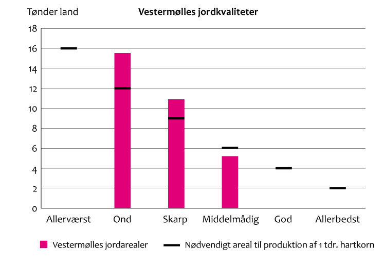 Ved matrikuleringen i 1688 blev de enkelte ejendommes marker målt op. Samtidig blev deres kvalitet vurderet. Vestermølle havde et stort landbrugsareal i forhold til andre møller. Til gengæld var jordens kvalitet ikke særlig god …