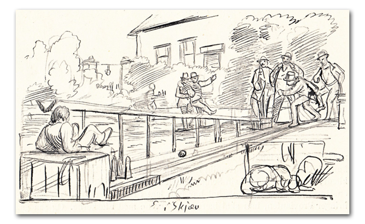 Skitse af W. Marstrand (1810-1873), Keglespillere.