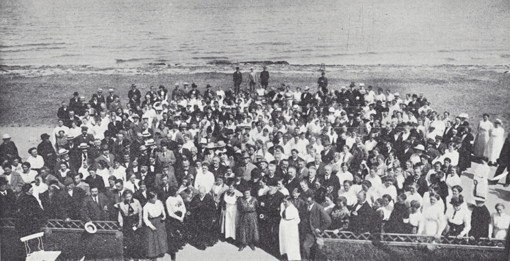 Foto fra delegeretmøde på Nyborg Strand for „Centralforeningen af Hjemmesygeplejevirksomheder i Danmark“. Kirstine blev medlem af landsbestyrelsen i 1912 og af femmands-repræsentantskabet i 1918. Hun sad der stadig i 1934.