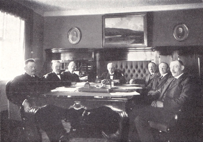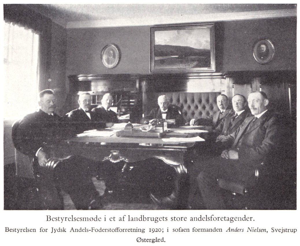 Anders Nielsen for bordenden under et bestyrelsesmøde i Jydsk Andels Foderstofforretning, 1920.