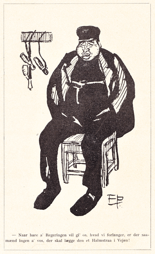– Naar bare a’ Regering vil gi’ os, hvad vi forlanger, så er der saamænd ingen a’ vos, der skal lægge den et Halmstraa i Vejen!