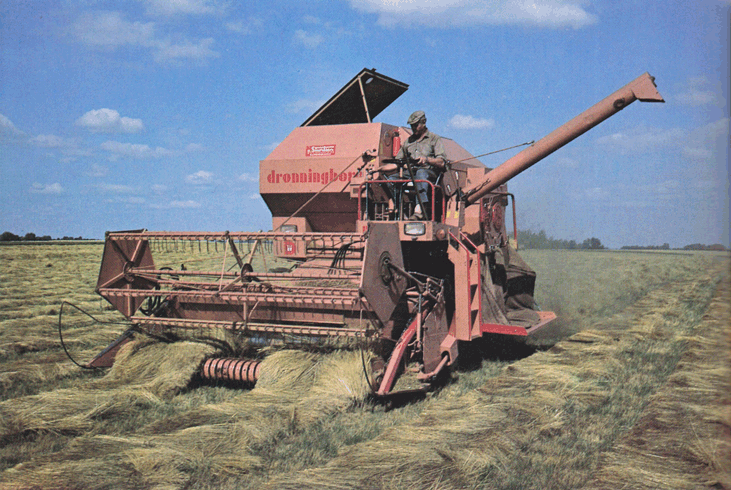 Høst af rødsvingel. (Kilde: O. Thøgersen: Danske Landboforeningers Frøforsyning 1906 - 27. januar – 1981)