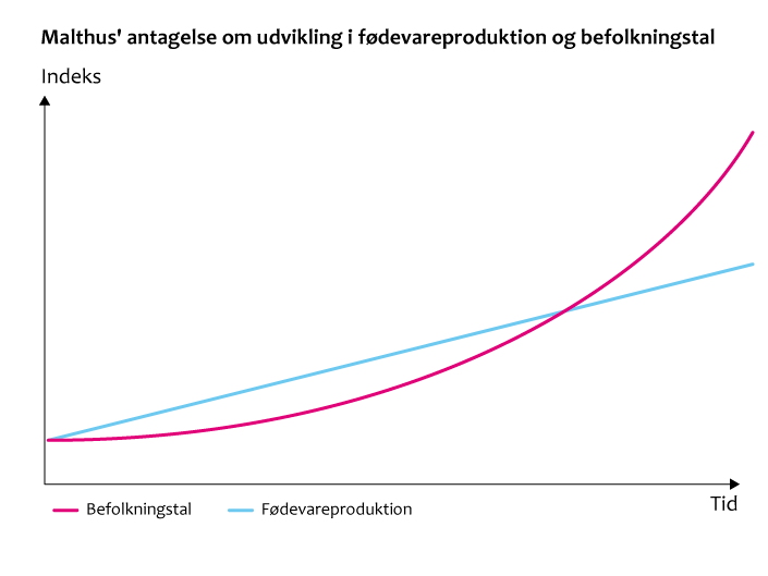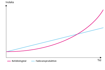 Malthus' antagelse om udvikling i fødevareproduktion og befolkningstal. Foto: Danish Crown.